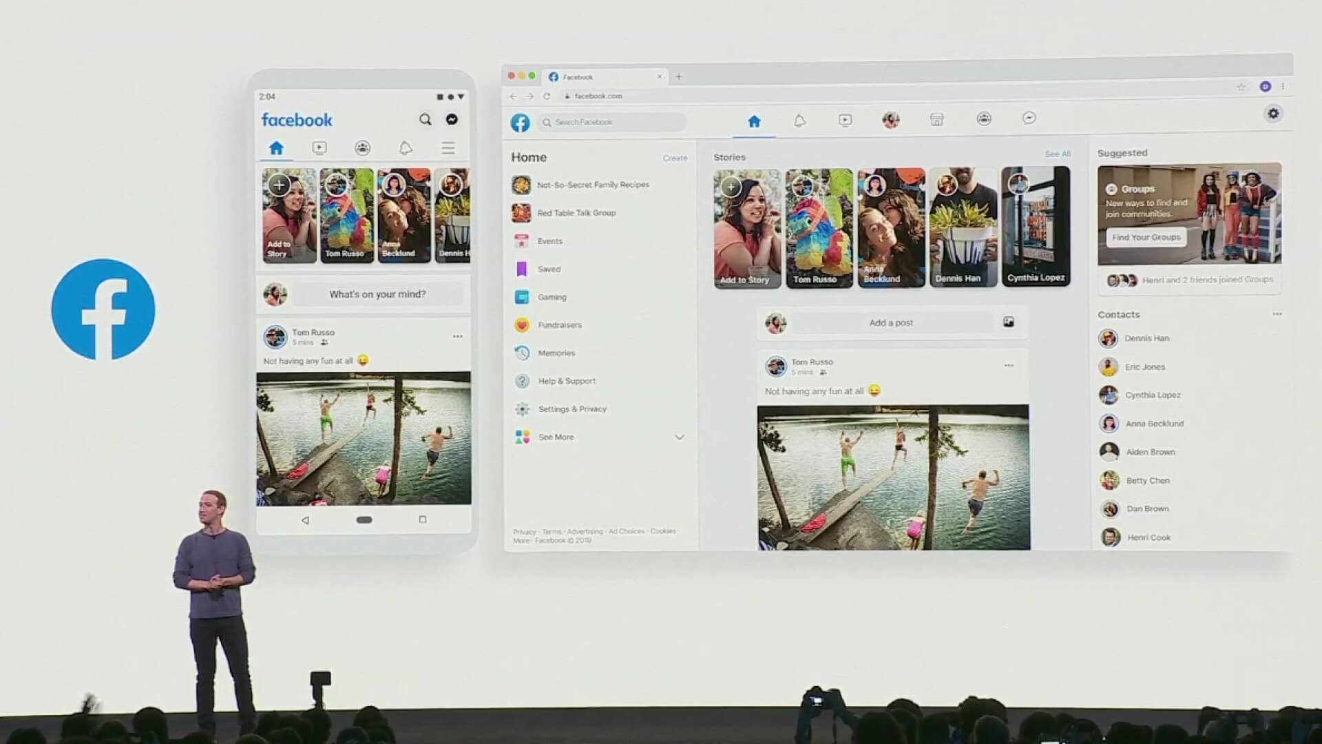 CEO Mark Zuckerberg said Facebook Groups are at the heart of the new Facebook experience during his F8 kick-off presentation on Tuesday.