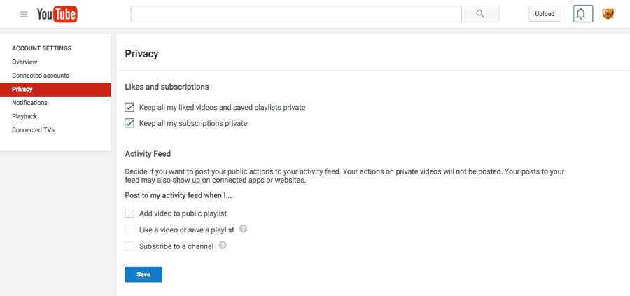 Likes and subscriptions: This option enables you to make the videos, playlists and subscriptions you interact with private.